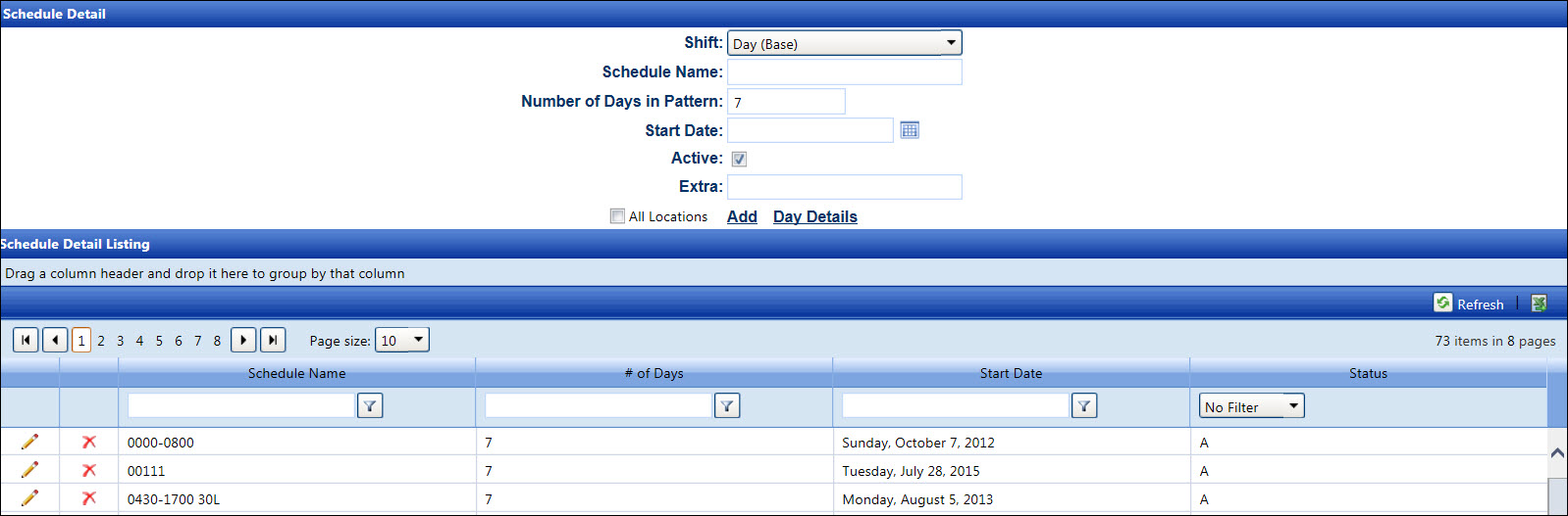 Click Add to save and display a new schedule in the Schedule Detail Listing. Refer to Day Details to create day details for the new schedule.