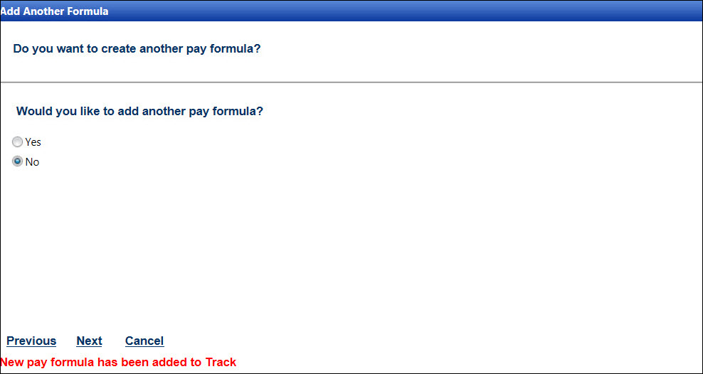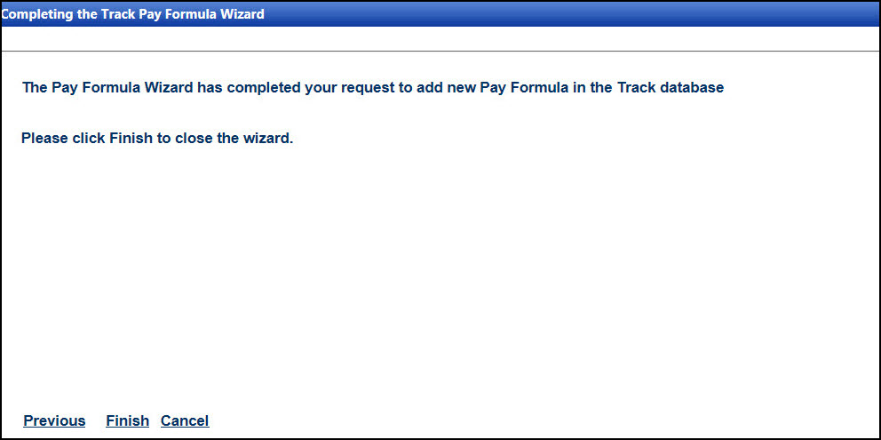 to return to the Welcome to Track Pay Formula Wizard screen.