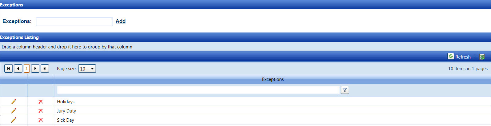 From the Exceptions Listing, click the Edit icon to enable the Exceptions text box.