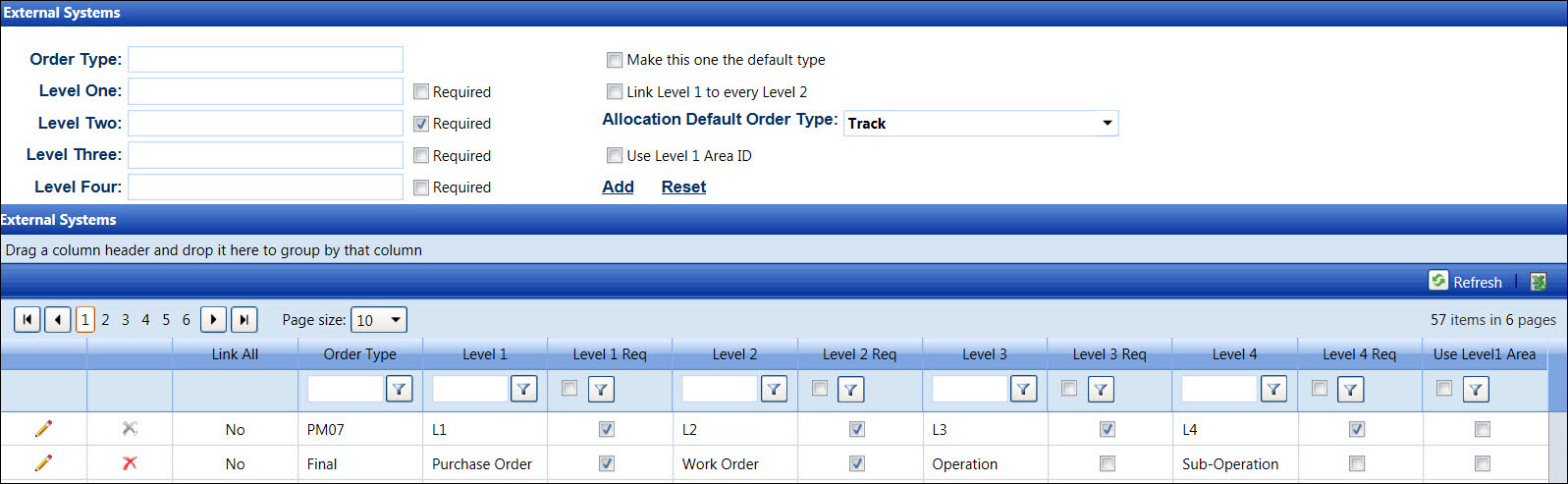 Click Add to save and display the new order type and its information in the External Systems grid.