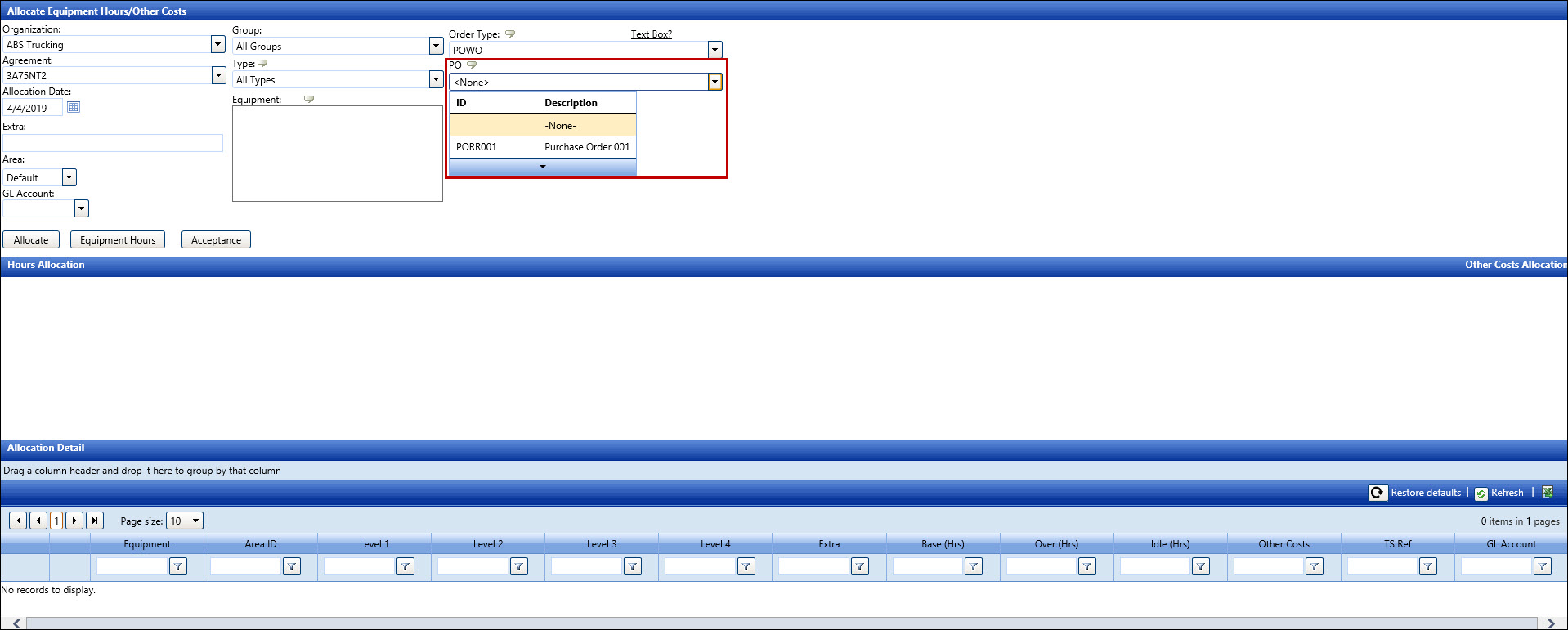 Allocate Equipment Hours/Other Costs (Allocations > Allocations
