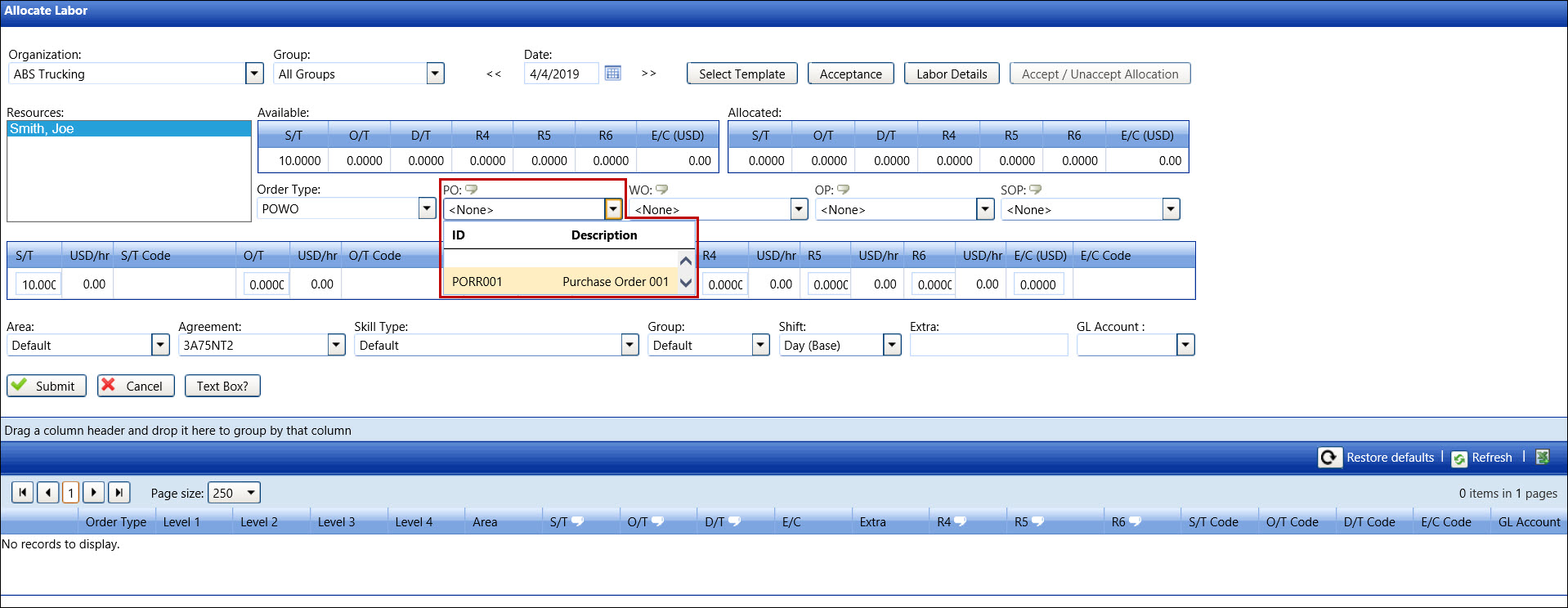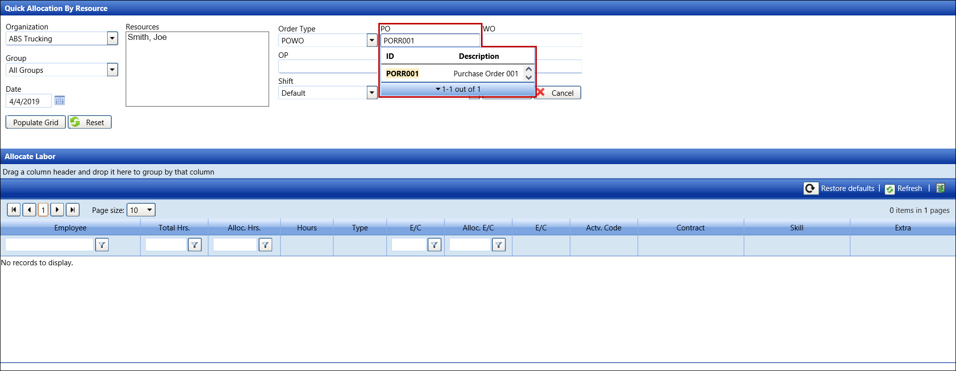 Allocate Labor (Allocations > Allocations > Labor Hours)