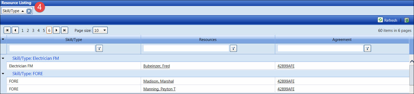 The number of records and pages are located at the top right corner of the grid. Select the number from the Page Size drop-down list to display the selected number of records per page.